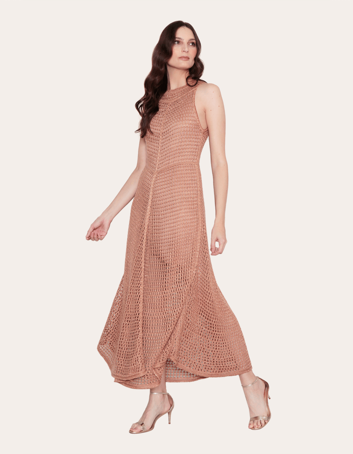 Vestido midi tricot lurex rendado Bege medio