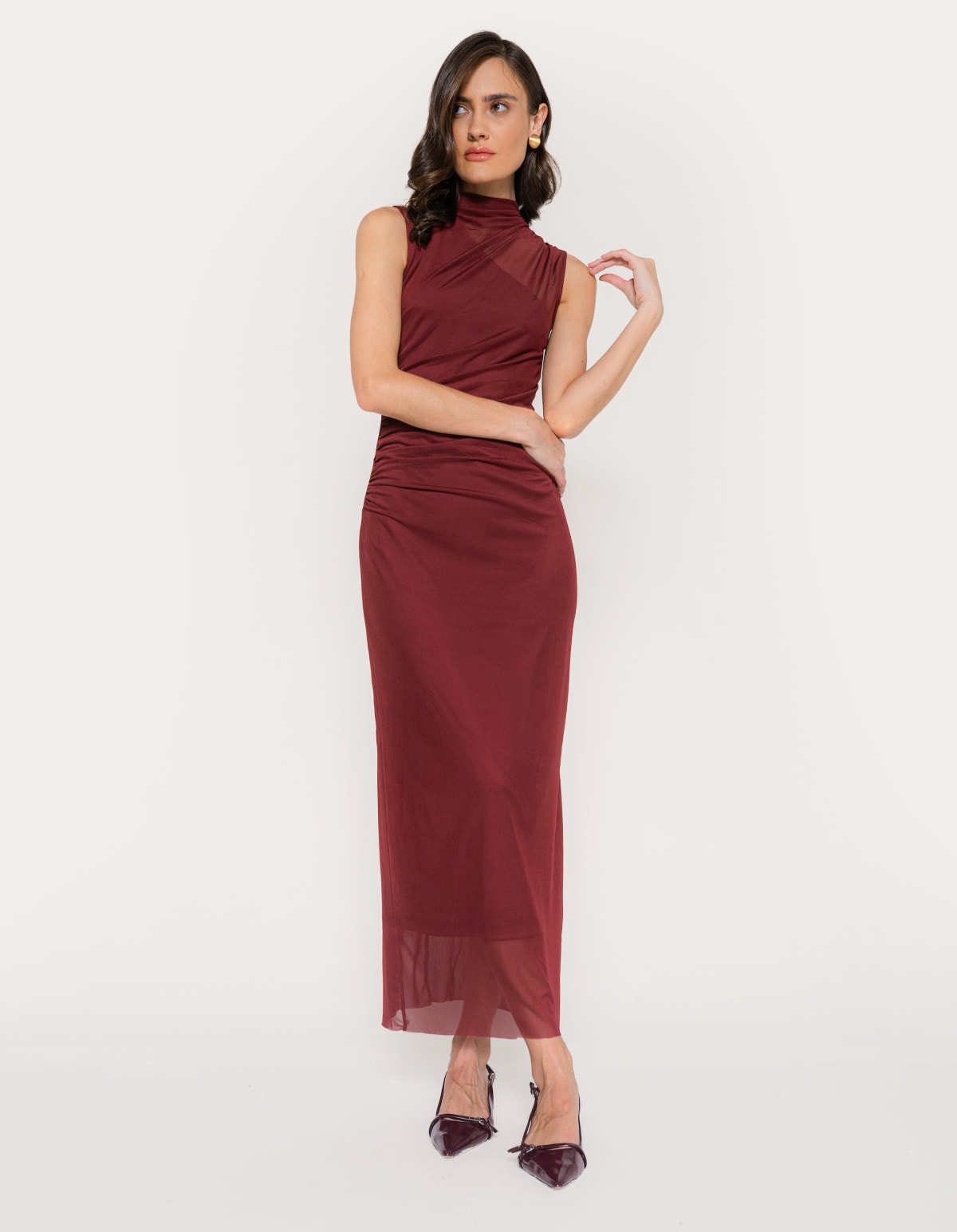 Vestido midi tule drapeado