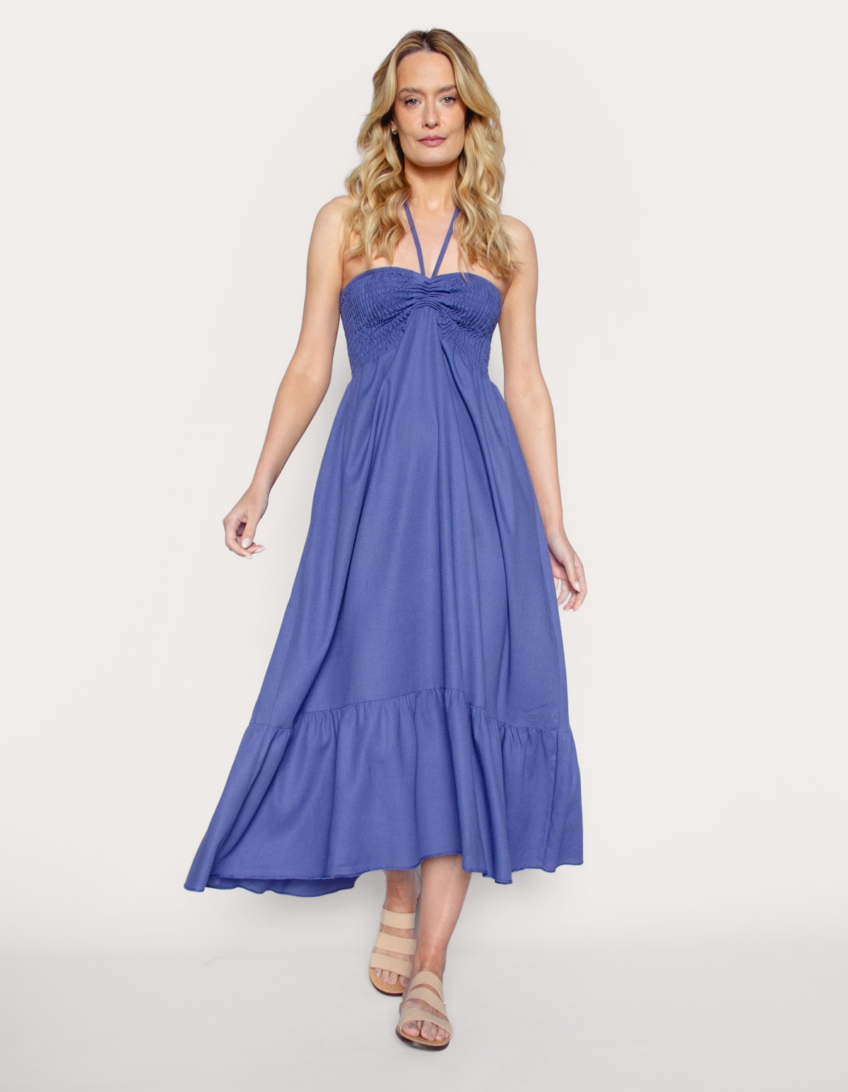 Confeccionado em linho, ele pode ser um vestido midi, com detalhe em lastex e ajuste no busto, ou pode ser usado com saia longa, você decide como quer e a versatilidade dessa peça única que pode ser usada de duas formas, são perfeitas para o verão e com certeza você vai arrasar por onde passar.