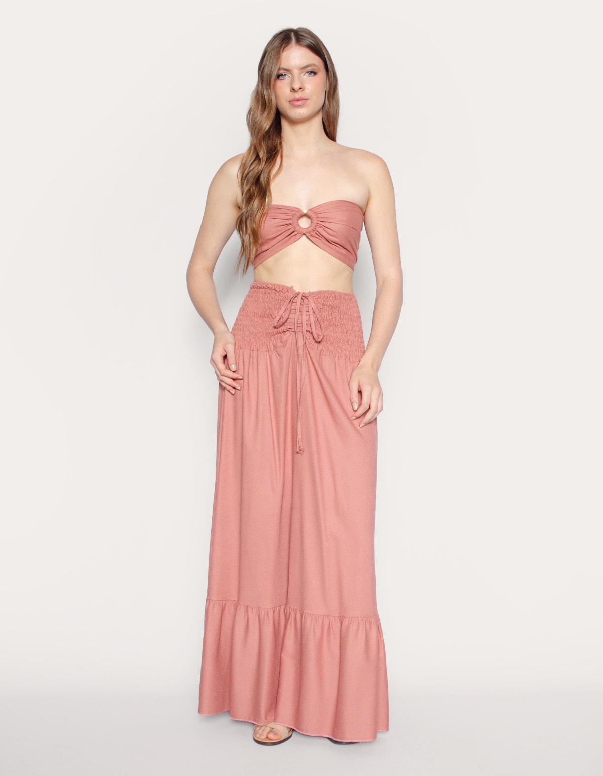 Confeccionado em linho, ele pode ser um vestido midi, com detalhe em lastex e ajuste no busto, ou pode ser usado com saia longa, você decide como quer e a versatilidade dessa peça única que pode ser usada de duas formas, são perfeitas para o verão e com certeza você vai arrasar por onde passar.