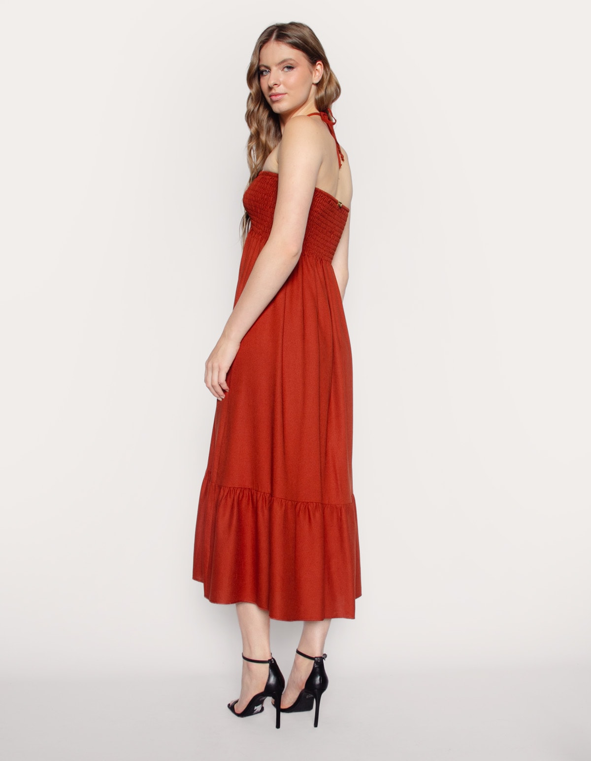 Confeccionado em linho, ele pode ser um vestido midi, com detalhe em lastex e ajuste no busto, ou pode ser usado com saia longa, você decide como quer e a versatilidade dessa peça única que pode ser usada de duas formas, são perfeitas para o verão e com certeza você vai arrasar por onde passar.