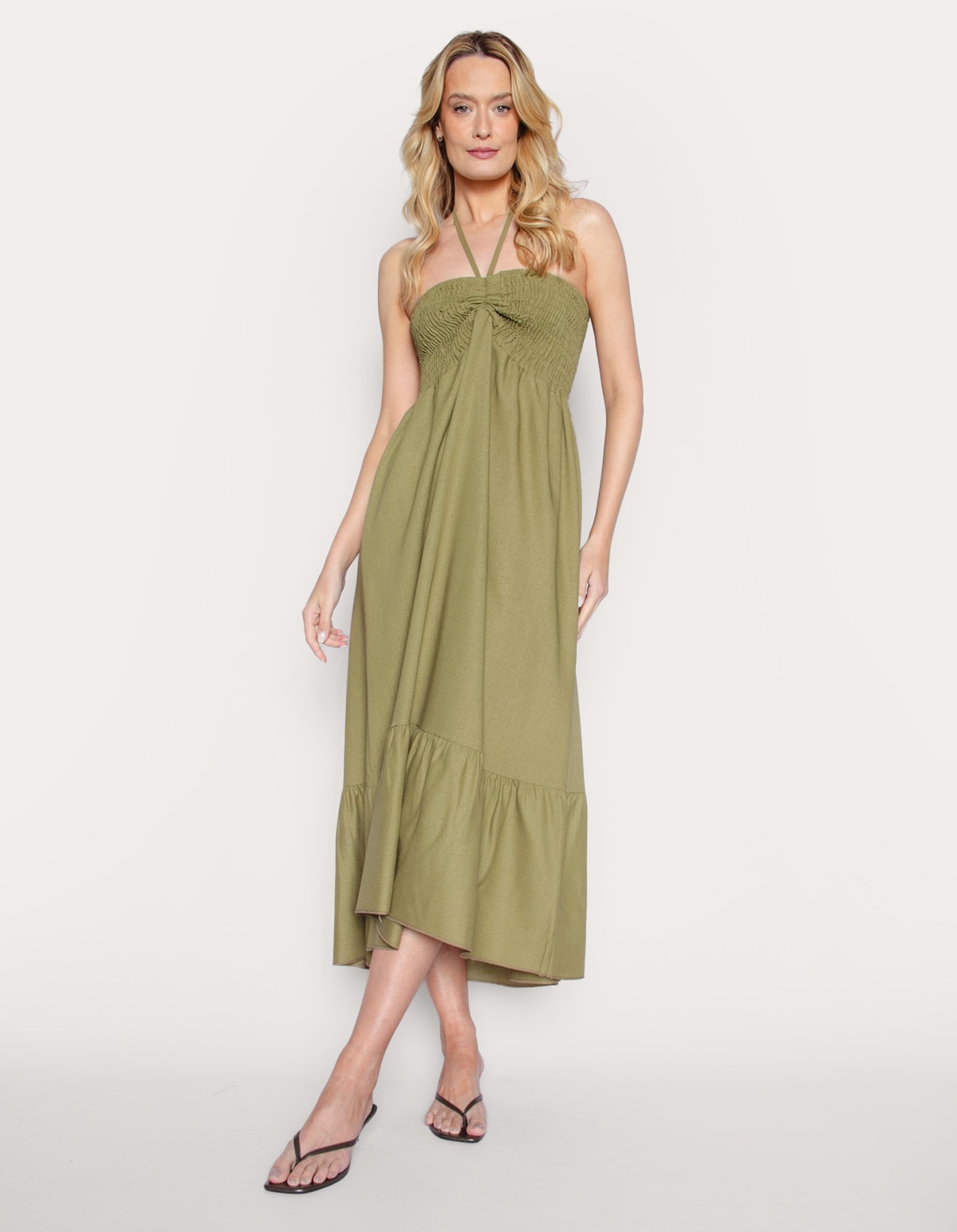 Confeccionado em linho, ele pode ser um vestido midi, com detalhe em lastex e ajuste no busto, ou pode ser usado com saia longa, você decide como quer e a versatilidade dessa peça única que pode ser usada de duas formas, são perfeitas para o verão e com certeza você vai arrasar por onde passar.