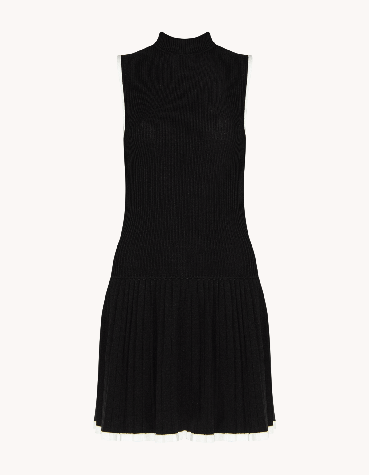 Vestido tricot curto cavado, golinha alta e saia plissada. charmoso e versátil! indispensável no dia a dia!